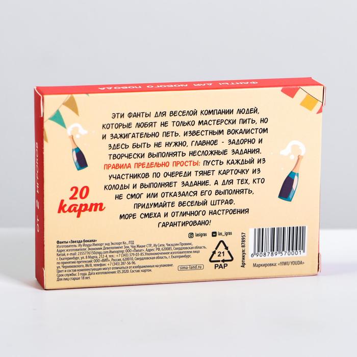 Купить игра для компании "фанты звезда бокала" 20 карт от 120 руб. с доставкой до пункта выдачи в Топках. Интернет магазин ДекаМаркет. Оплата при получении.